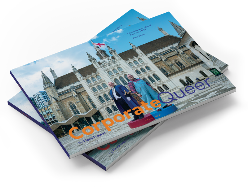 The CorporateQueer book launched at Broadgate in 2021, and now a bigger coffee table version with all 108 portraits available from the Guildhall Art Gallery Bookshop.